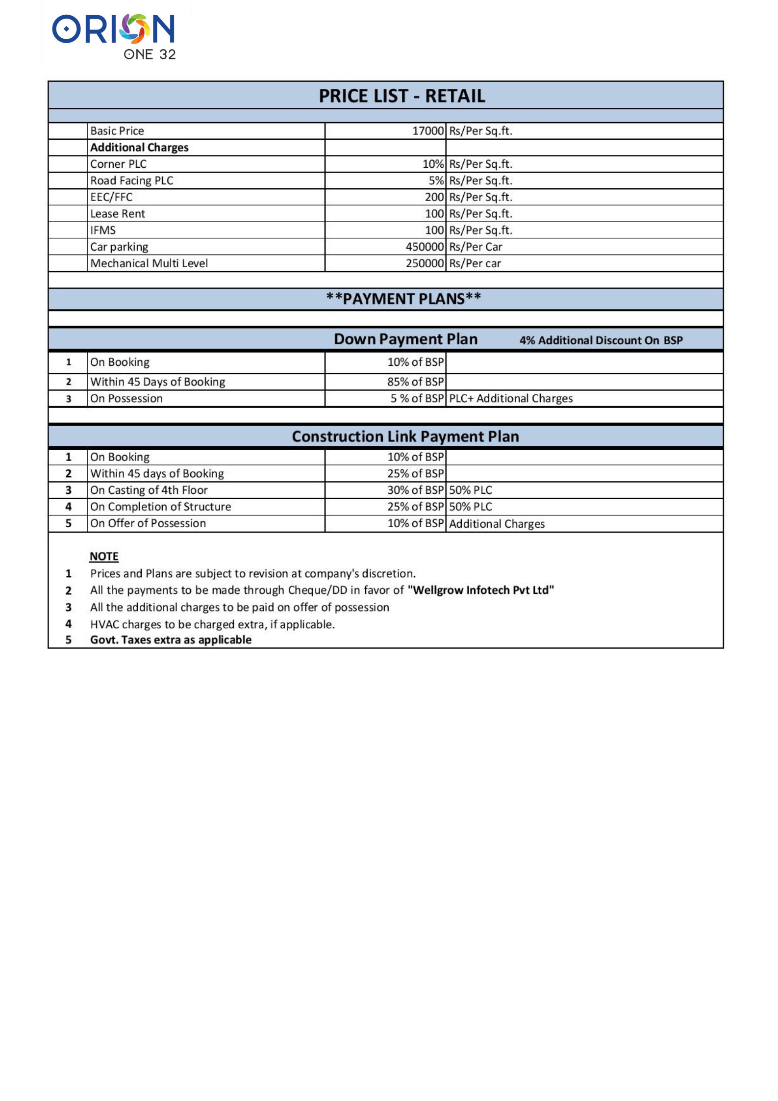 Orion One32 Price Plan