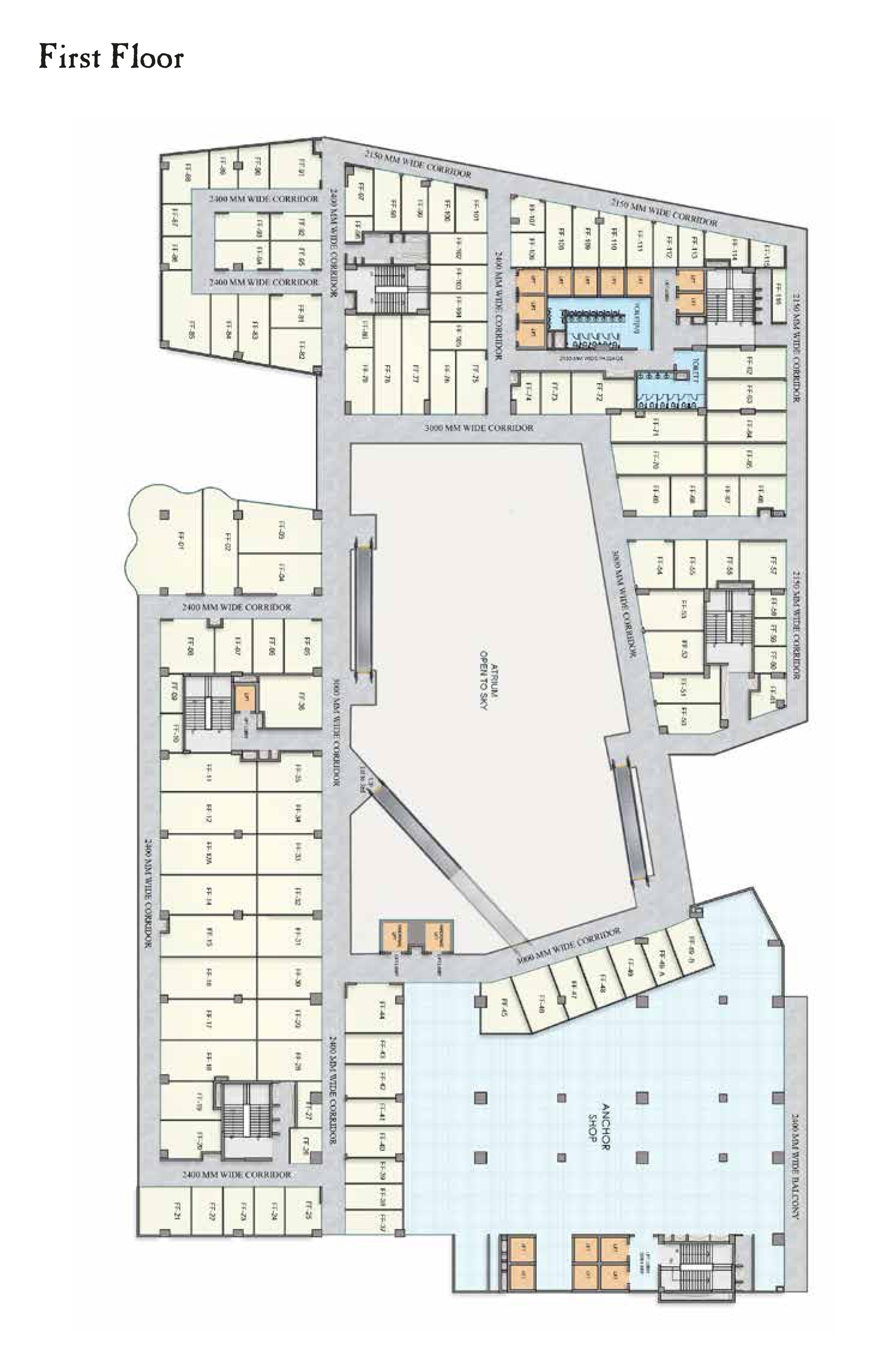 * Spacious 12-18 ft corridors across the shop fronts