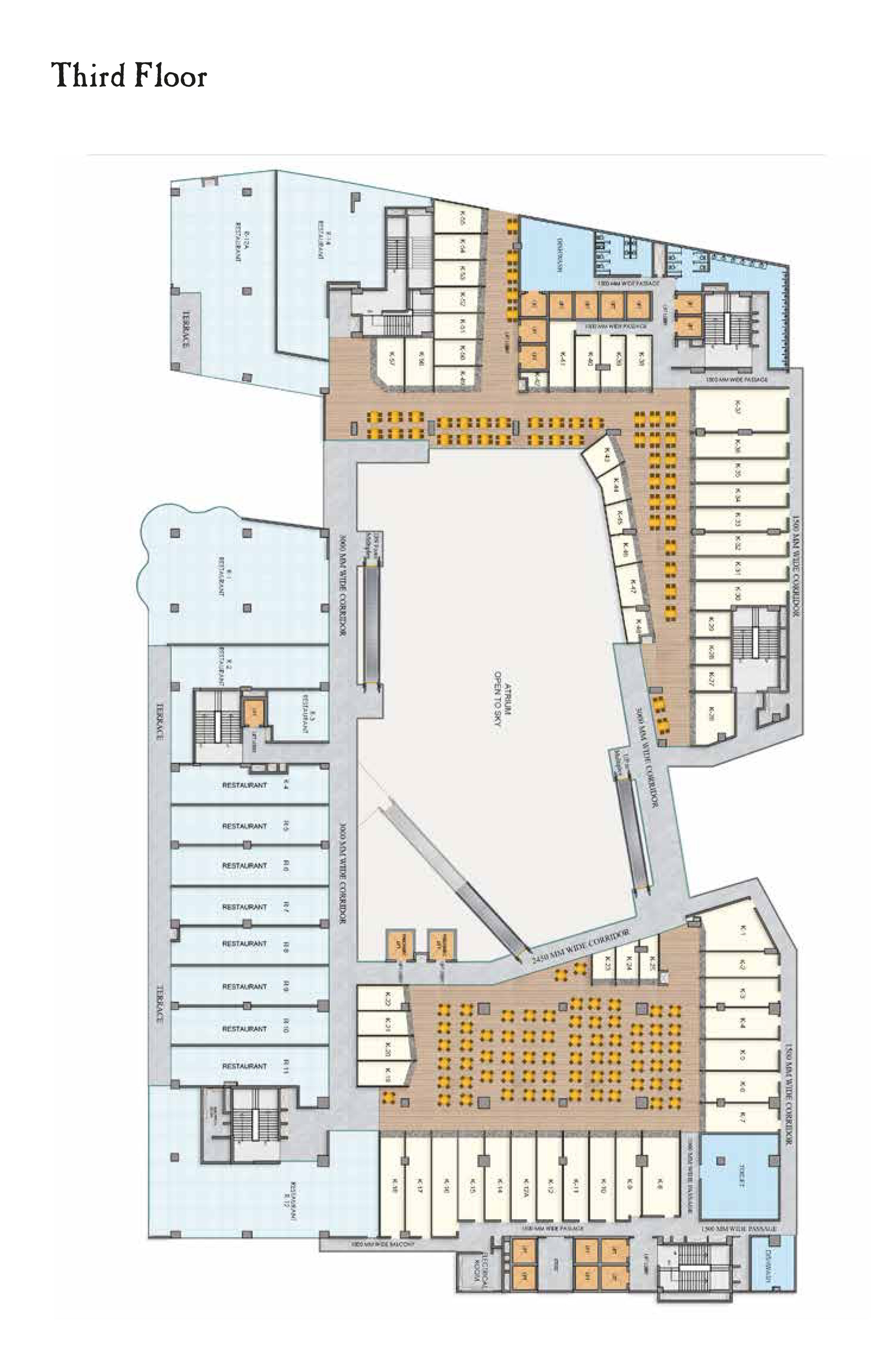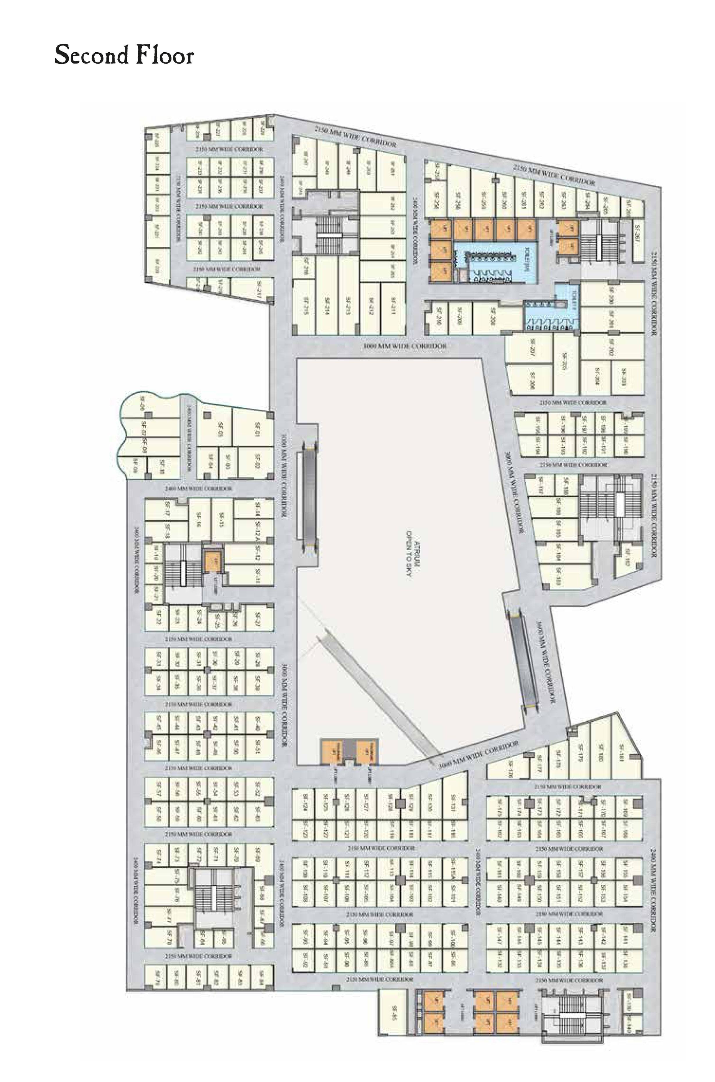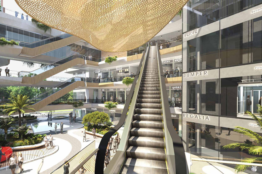 * Double height Ground floor shops facing the atrium and main roads